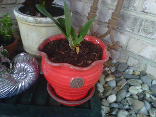 This is Ramona. She is a baby orchid that has not bloomed yet. She'll be quite lovely when she does, though :)